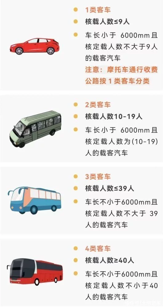 客车分类依据公安机关交通管理部门机动车注册登记的车辆类型和核定载人数。