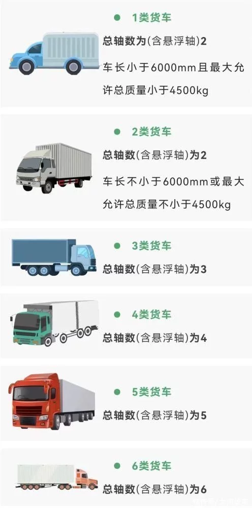货车分类依据车辆总轴数以及车长和最大允许总质量。