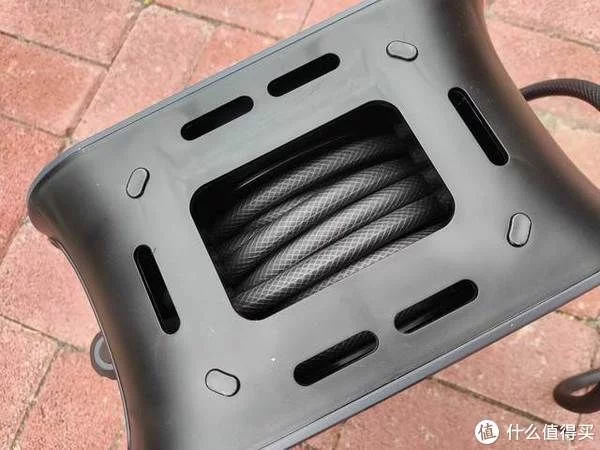 洗车水枪令人最烦的地方莫过于收纳了,倍思gf8就解决了这个问题,正反面各有一个手摇式收纳转盘,可以轻松的将水管盘起来,避免暴晒、折损,同时也更美观。在收纳箱侧面各有一个卡扣,可以将进出水龙头固定起来。