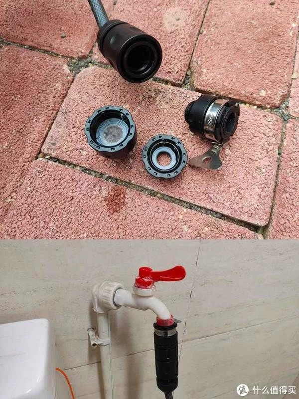 还有一个细节很到位,就是水龙头有多种接口型号,几乎可以满足大多数家用接头,在兼容性上做的很到位,同时在水管上还有卡扣设计将水龙头进行很好的进行固定,内部设计了滤网,可以过滤杂质,保证出水稳定,同时保护了车漆。
