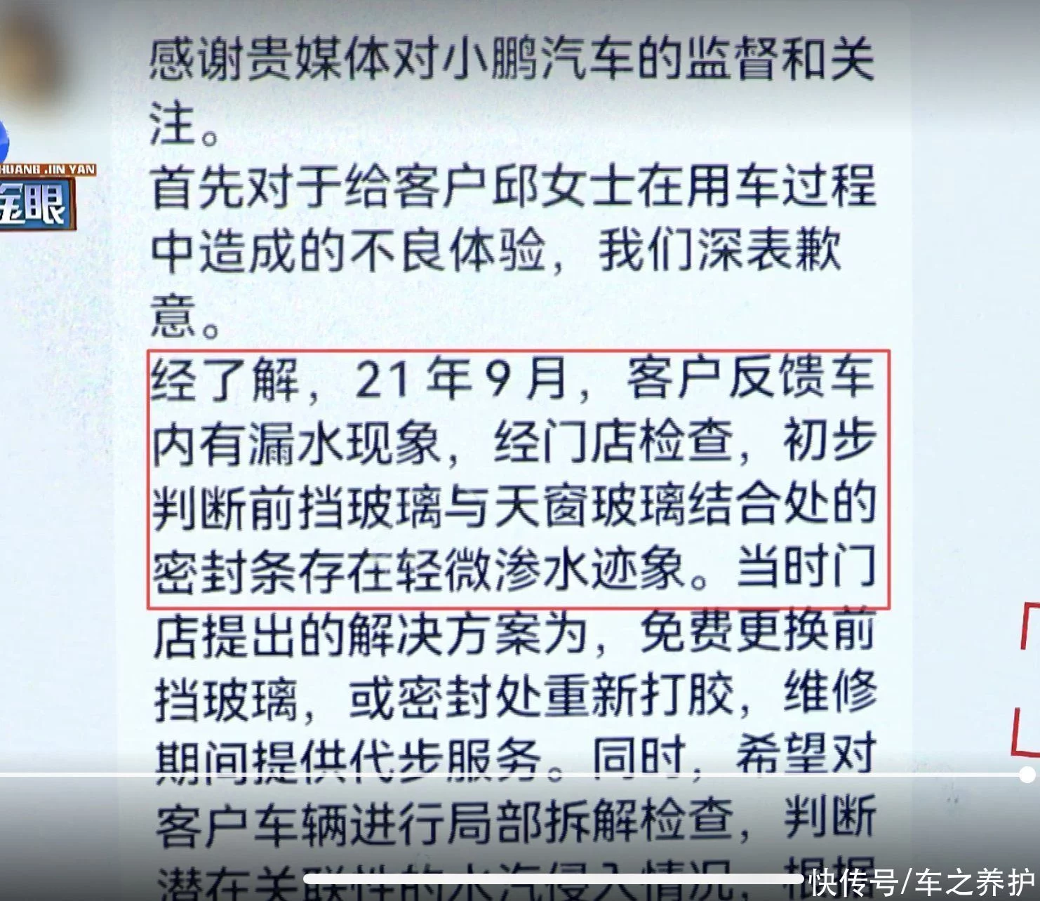 对于以上的问题,小鹏汽车的售后中心负责人表示,车辆的漏水问题已经确定是胶条密封的原因,可以为车主提供更换前风挡玻璃以及重新打胶来进行解决。同时维修期间提供代步车服务。而车门关不上的问题是锁车按钮处有拉绳被卡住,维修人员调整一下就恢复正常了。最后是车机黑屏问题,需要对车辆的中控和车机进行拆解维修,但车主表示不同意。