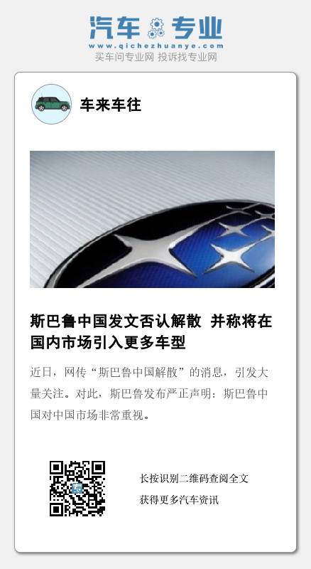 8月30日,斯巴鲁中国官方发布声明,称此前网传的“斯巴鲁中国解散”消息不实。