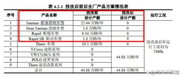 月销过万听起来是很让人羡慕的成绩,但大众却并不这么认为,桑塔纳甚至还经常被传出将要停产的消息。去年就有媒体爆料,上海大众在一个工厂技改的项目资料里显示,桑塔纳、浩纳、斯柯达昕锐和昕动四款车型在技改完成后,预计产能变成了零。原有产能将转移给途岳、途铠以及全新零度等车型。