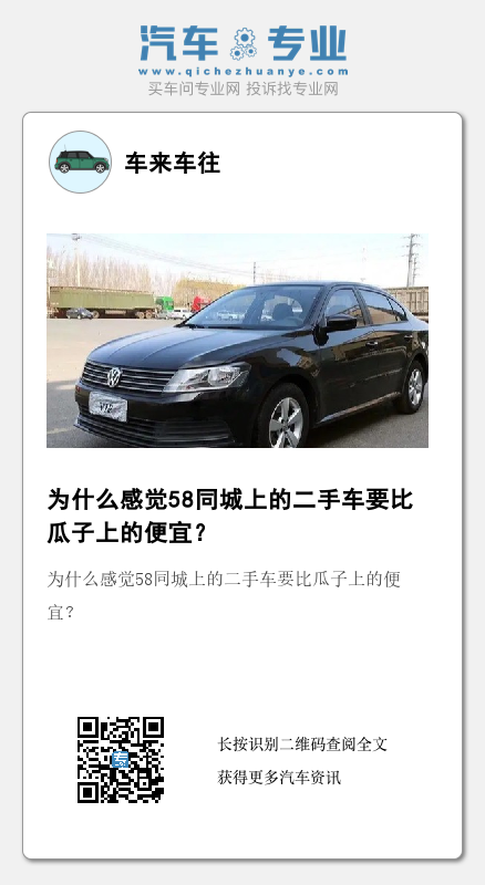 而不要钱的58就成为他们的一个宣传手段,而58为了流量考虑,也会默认为这样的情况,所以就会出现车里程和年限差不多,但是价格差很多的车不管是大平台还是车贩子,二手车水都是很深的。