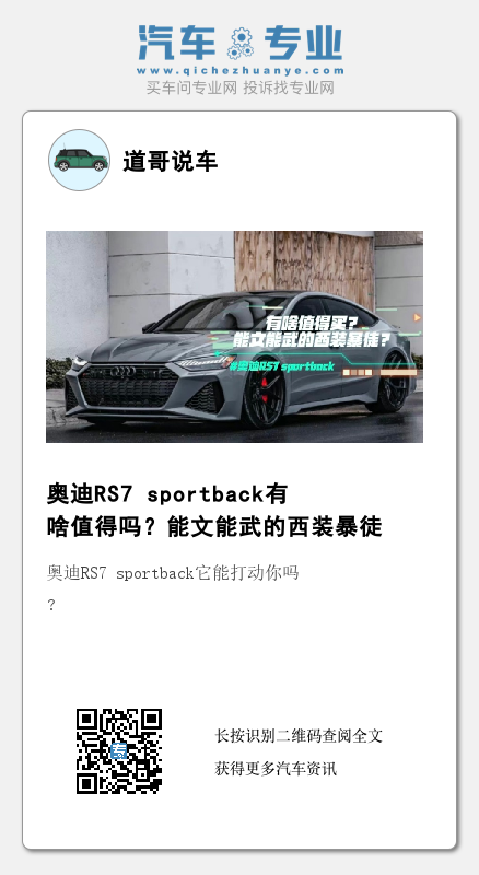 熏黑处理的网状进气格栅,贯穿式腰线搭配溜背式车顶,不怒自威的战斗气息悄然显露;超大的三屏联动配上大面积的碳纤维装饰点缀数字座舱传递出更加时尚智能的科技感,再加上HUR抬头显示功能,让你开车低头的时候给你提醒,安全得到保障;8AT变速箱让换挡变得更快,再配上EA825最新一代4.0TV8双涡轮增压发动机,嗖的一声,只有空气弥漫的味道证明存在过,3.6秒的百米加速,飞驰人生有没有体验,献丑啦,12.3L的油耗洒洒水啦。