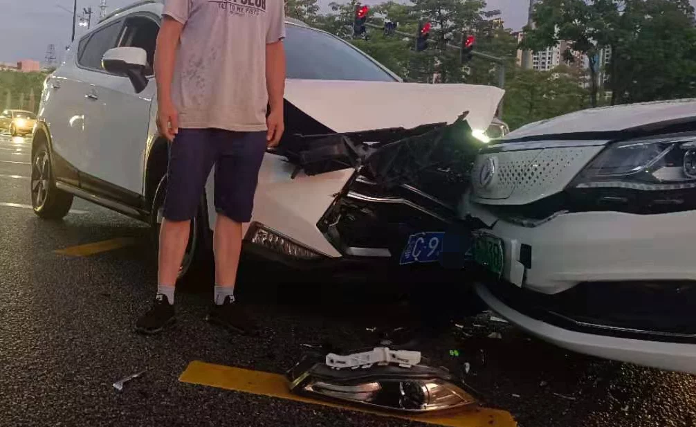 谭某下车看到爱车受损严重,赶紧打电话报警。香洲交警赶到现场,但两位司机都一口咬定驶入路口时是绿灯。双方各执一词,交警只好调出监控,却发现事故发生时,对方直行车道是绿灯,但谭某前方的左转箭头灯是红灯。