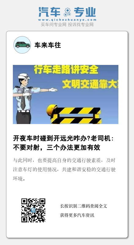 很多车主之所以不喜欢开远光灯的司机,主要就是远光灯太晃眼了,这时我们可以利用汽车护目镜,汽车的遮阳挡板或者购置颜色比较浅的墨镜等,与4S店商量一下加装一些防远光灯的设备,价格并不高,实用还可以对远光灯车主“眼不见心不烦”。