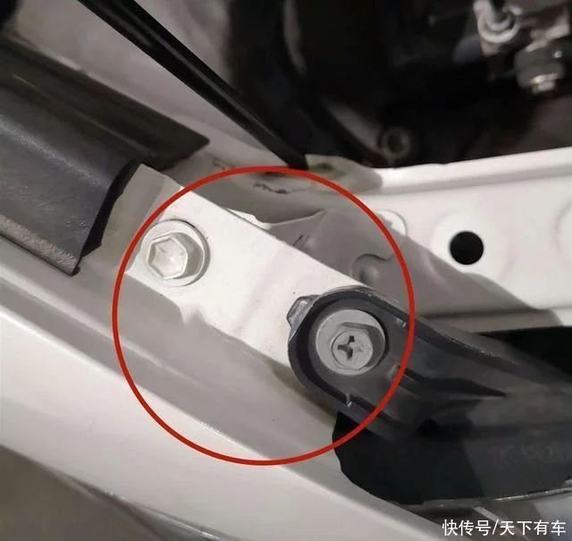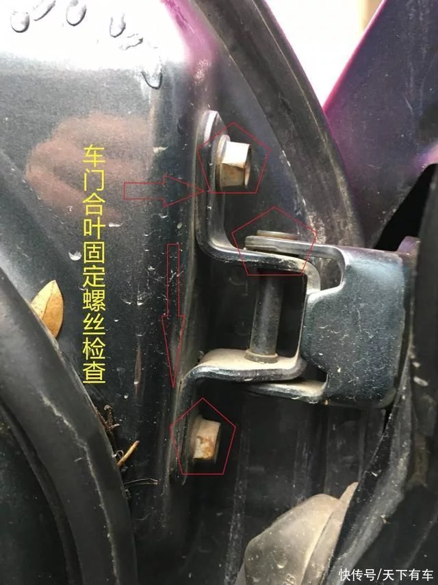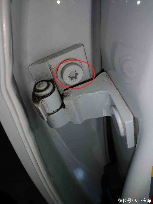 准确点说是车门门铰链上用来固定用的螺丝,作用就是用来固定门铰链和车门的连接件,一般安装时会作的非常紧,正常开关门是不会影响牢固性的。这颗螺丝的位置很容易被忽略,因为车门这个位置很少出问题,最多就是开关门时出现异常响动,加点润滑油就能解决的事,根本不会有人想到需要卸车门这么严重。