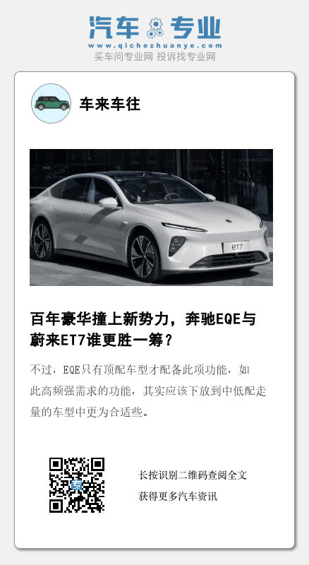 做了蔚来ET7与奔驰EQE的车型对比之后,不难理解蔚来汽车联合创始人秦力洪为什么要用ET5和宝马3系比销量,因为力洪总不“欺负人”!无论从配置、动力、智能化水平和售价这些方面做对比,蔚来ET7都不同程度的优于奔驰EQE!我基本判断,奔驰EQE的销量很难过千,有不同看法的读者请在评论区留言,我们一同探讨。