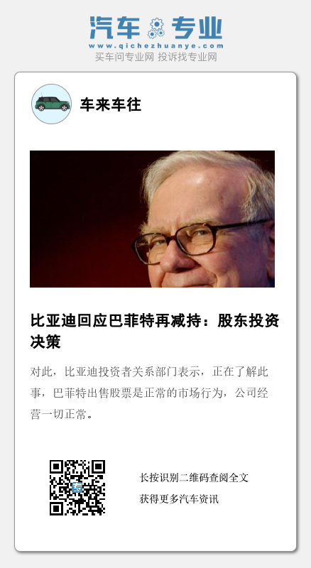 到了9月2日,巴菲特再度减持比亚迪,持股比例下调至18.87%。对此,比亚迪投资者关系部门表示,正在了解此事,巴菲特出售股票是正常的市场行为,公司经营一切正常。(消息来源:36氪、同花顺财经等;编译/汽车之家 李娜)