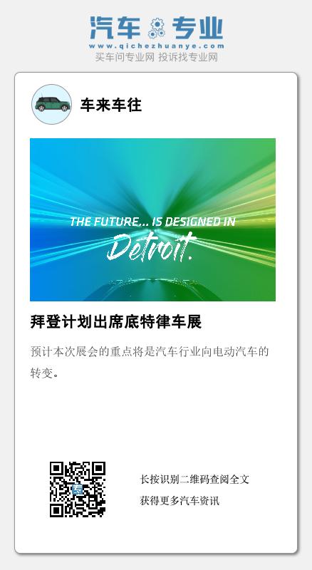 9月2日,美国商务部向底特律一个名为“全球出行中心”的区域项目投资了5,220万美元,帮助密歇根州的汽车行业向电动汽车和自动驾驶汽车过渡。拜登在出席本次活动时表示:“我将出席(底特律车展)。你应该已经注意到了,我是一个汽车爱好者。”