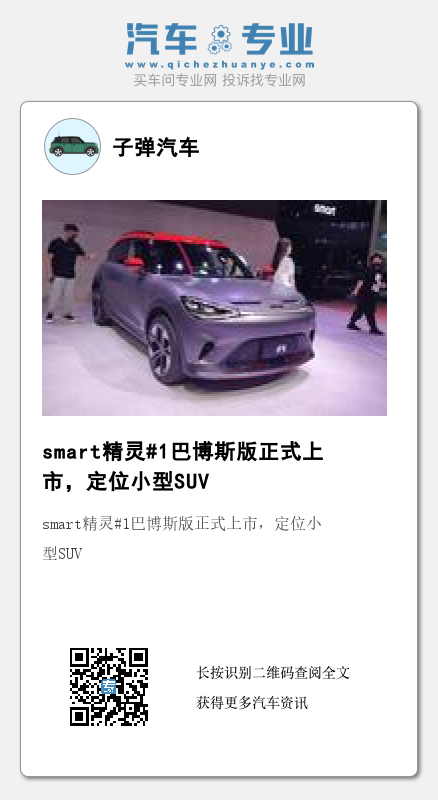 近日,在今年开幕的成都国际车展上,smart精灵#1(图片|配置|询价) 2022款 BRABUS性能版上市。官方指导价格为27.9万元,新车还有哪些亮点呢?下面就跟随笔者一起来看看吧。