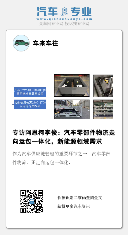 近日,重庆阿思柯供应链管理有限公司(以下简称“阿思柯”)副总经理李俊在接受盖世汽车采访时表示,目前,在汽车行业,运包一体化物流发展得如火如荼,“诸多大的主机厂,例如长城、长安、吉利、比亚迪、大众、丰田、本田等都在积极实施运包一体化,整体来看,大概20%的零部件物流已经在运包一体化了。”