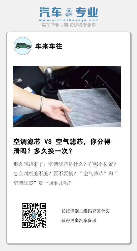 那么问题来了:空调滤芯是什么?在哪个位置?怎么判断脏不脏?要不要换?“空气滤芯”和“空调滤芯”是一回事儿吗?