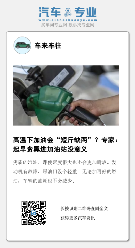 专家指出,在一些昼夜温差大且加油站建设不规范、管理不严格的地区,还是不能排除高温时段汽油“短斤缺两”的可能性,但如果汽油品质差、用车习惯差,再怎么起早贪黑去追求较大密度的汽油也没多大意义。