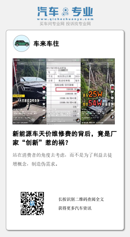 即便有保险公司兜底,这种维修高昂的维修成本,还是会导致保费的上涨,最终由消费者自己买单,这才有了类似“天价维修费”的荒唐事。