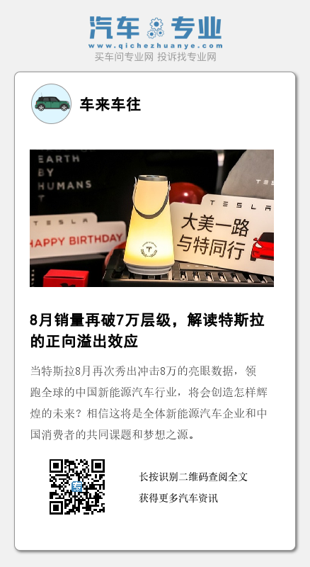 当特斯拉8月再次秀出冲击8万的亮眼数据,领跑全球的中国新能源汽车行业,将会创造怎样辉煌的未来?相信这将是全体新能源汽车企业和中国消费者的共同课题和梦想之源。