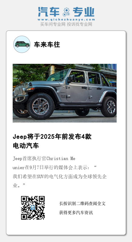 Jeep首席执行官Christian Meunier在9月7日举行的媒体会上表示:“我们希望在SUV的电气化方面成为全球领先企业。”
