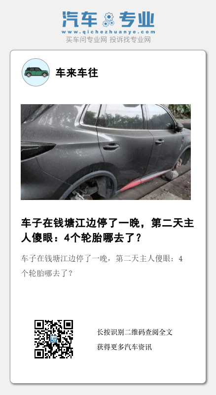 “晚上停车时还好好的,第二天早上4个轮胎都不见了,他们还‘好心’给我用砖头垫了一下。”看着自己的SUV,车主简直要气笑了。