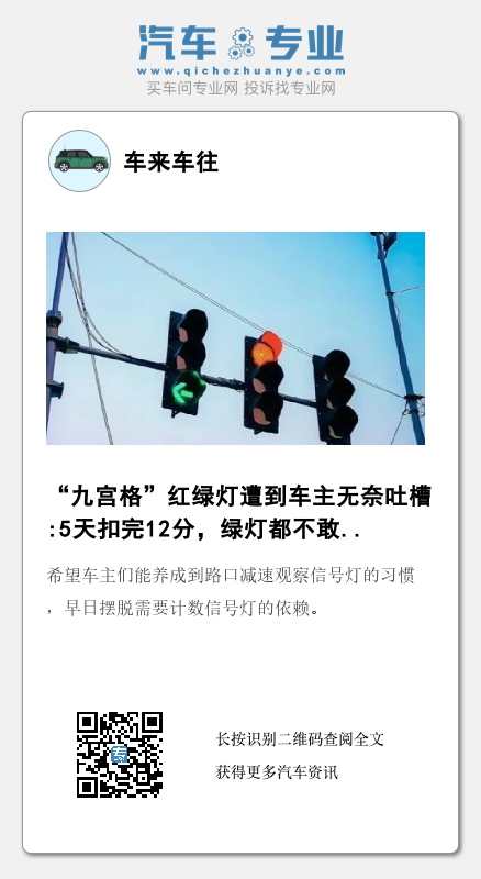 不知道从什么时候开始出现了一种“九宫格”信号灯,跟前两次改革不同,这次连倒数的秒数都去掉了只剩下了九个信号灯。这次的信号灯变化让广大车主们十分不习惯,甚至有的车主5天之内扣光了12分。很多车主吐槽:现在连绿灯都不敢走了。