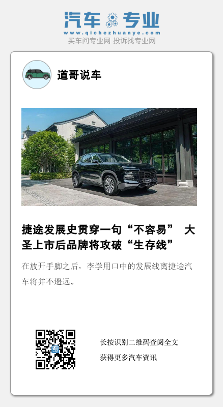 而在拥有了捷途大圣之后,捷途汽车或许将很快向着“发展线”进发,并且达到一个量价齐升的状态。甚至“捷途品牌明年要实现50万辆的销量”目标也将并不遥远。