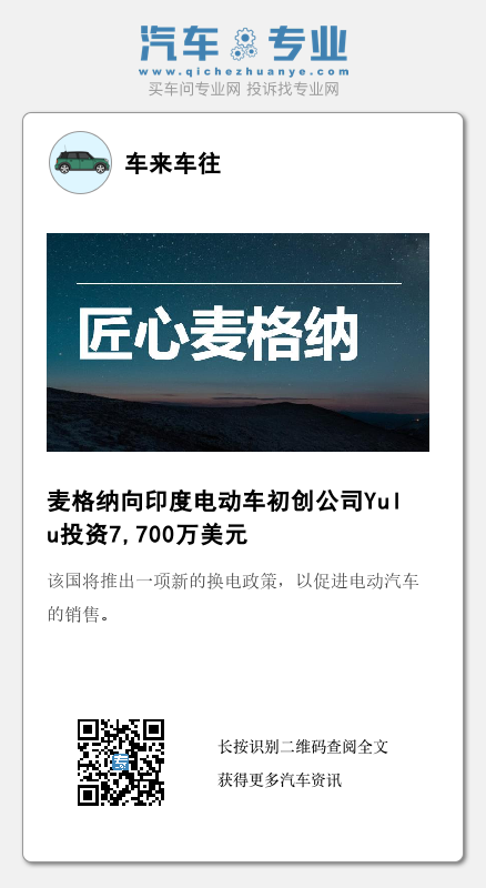 9月11日,汽车零部件供应商麦格纳国际表示,该公司正在向印度电动车初创公司Yulu投资7,700万美元,以进入微型移动出行市场。