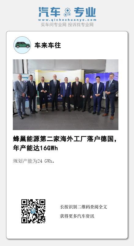 蜂巢能源发言人表示,拟建的劳赫哈默电芯厂将于2025年投产,年产能为16 GWh。