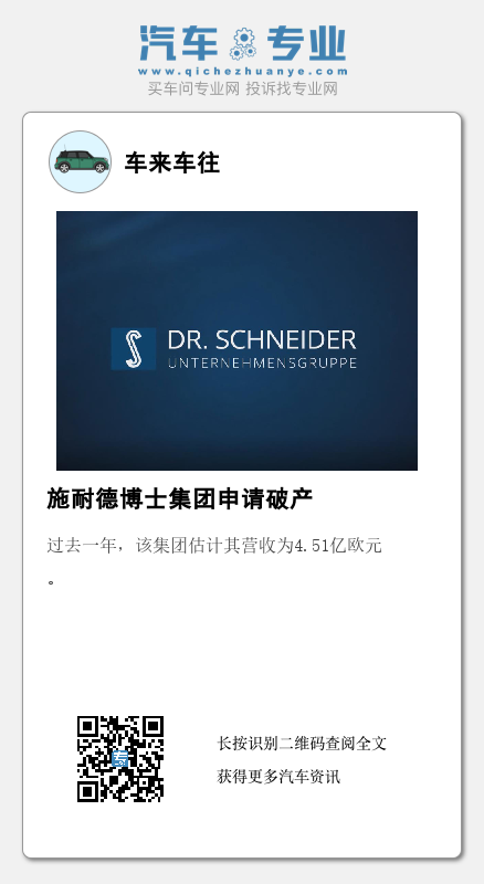据外媒报道,在重组和寻找战略投资者的同时,汽车内饰供应商施耐德博士集团申请了破产,约有1,400名在德国巴伐利亚州的员工受到了影响。据悉,施耐德博士集团已向地区法院提交了破产申请,初步破产程序已经启动。