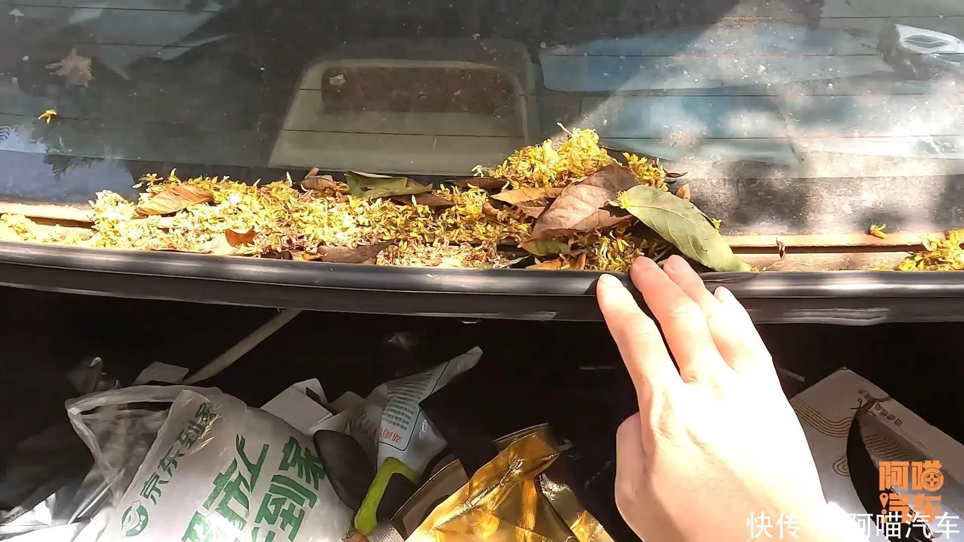 但是尾箱打开之后,它这些树上落下的花,树叶全部都会,积在这个地方,积一层。