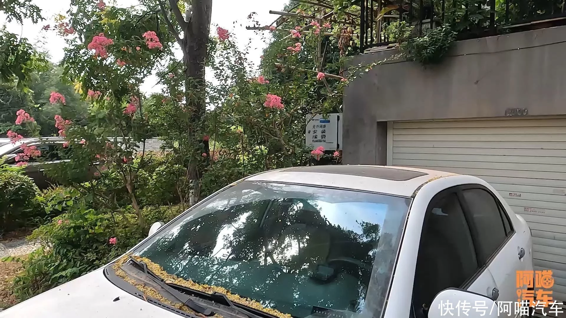 由于马上接近夏末入秋,这个时候的树叶花瓣,容易落很多在车上面,就整个前面全是。