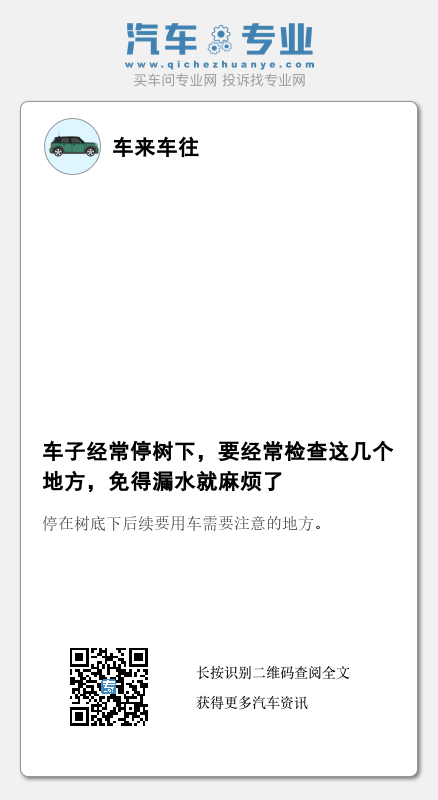 停在树底下后续要用车需要注意的,尤其是特别担心,容易出现漏水的地方。