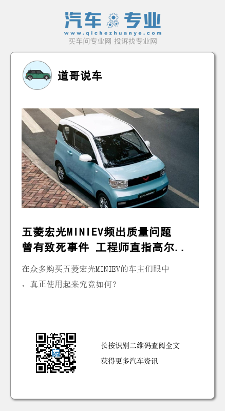 为何这款车会遭受纷繁复杂的质量问题甚至致死事件呢?某不具名汽车工程师向《道哥说车》编辑透露,五菱宏光MINIEV的底盘为整体电子后桥,属于非独立悬挂。这种结构主要是成本低,绝大多数场地车,例如高尔夫球车都是这种结构的。与普通乘用车底盘相比,主要是舒适型和极限工况下的动态性能表现要比乘用车(独立悬架)差一些,一般城市工况只是舒适型的感受不一样。