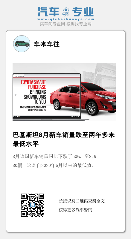 巴基斯坦汽车制造商协会在9月13日发布的数据显示,8月该国新车销量同比下跌了50%,至8,980辆,这是自2020年6月以来的最低值,当时受疫情大流行影响,该国汽车销量为7,325辆。