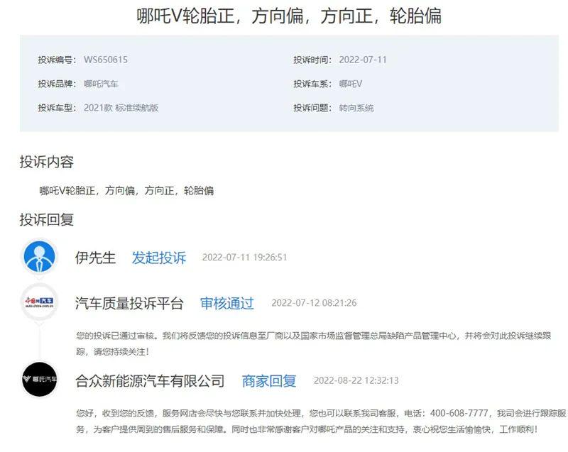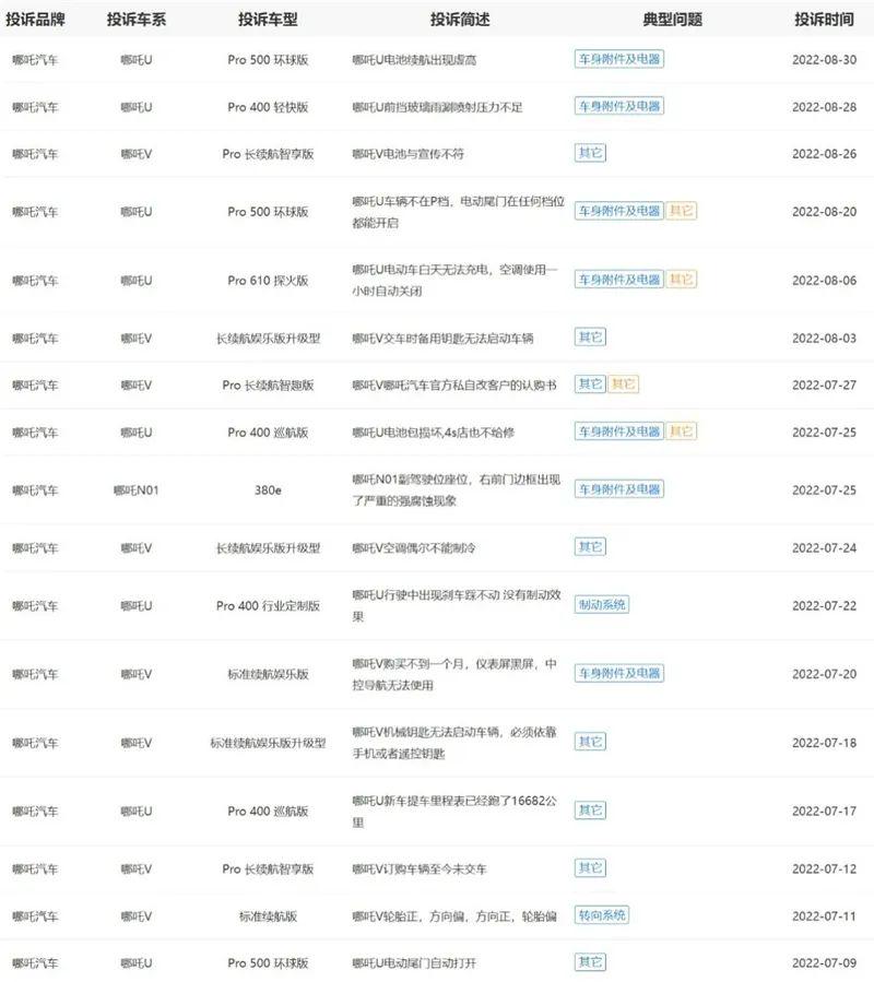 而7、8月份,该平台关于哪吒汽车的投诉迎来一轮暴涨,足足有17起,且问题五花八门。