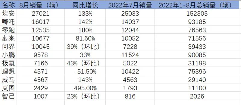 尽管哪吒汽车的销量表现不俗,8月哪吒汽车完成16017台车辆交付,同比增长142%,连续两月位居“新势力”榜首,已有了力压“蔚小理”的意味。