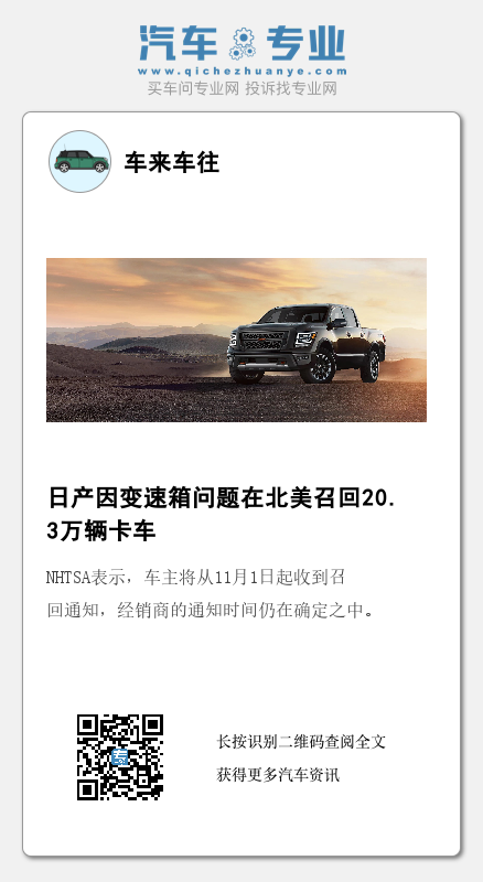 在发现变速箱中一对零件可能存在问题之后,日产将在北美地区召回203,223辆卡车。最新发现的问题可能导致车辆档位从“停车档”内滑出。
