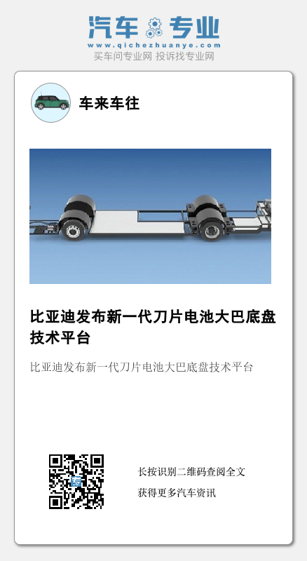比亚迪汽车官微消息,9月19日,德国汉诺威国际交通运输博览会上,比亚迪首次发布新一代刀片电池大巴底盘技术平台,未来巴士搭载刀片电池技术。据介绍,新一代大巴底盘采用欧洲标准模块化设计,通用化的车身合装方式,实现与车身厂的最有效匹配。