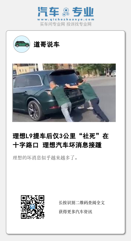 日前,福建泉州一理想L9车主爆料称,自己刚提车从交付中心开出3公里,就遇到了车辆故障,新车刹死在了红绿灯正中心。