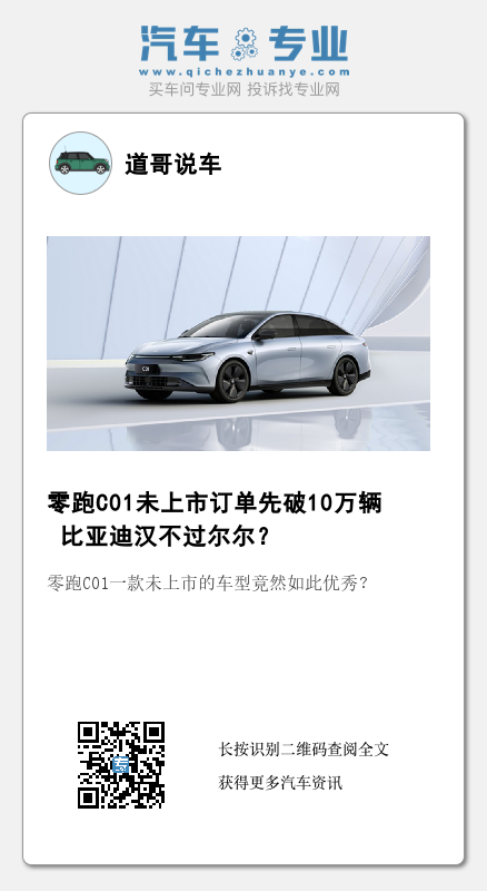 但未上市就斩获10万辆订单的车型却并不多见,要知道比亚迪汉月销两万台左右,从上市至今也就实现了累计销量30万辆,零跑C01一款未上市的车型竟然如此优秀?对比看来,比亚迪汉不过尔尔嘛!
