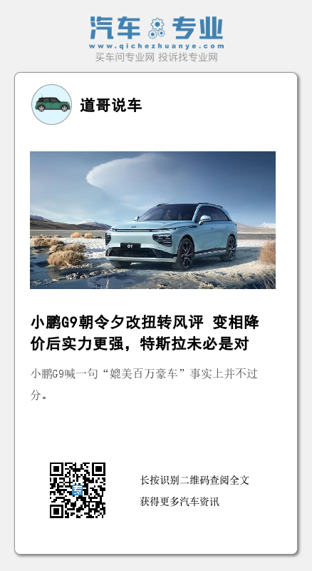 【文/道哥说车 听风吟】“朝令夕改”竟能扭转风评,小鹏G9开创了先例。