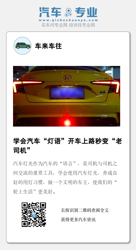 汽车灯光作为汽车的“语言”,是司机与司机之间交流的重要工具,学会使用汽车灯光,养成良好的用灯习惯,做一个文明的车主,使我们的“轮上生活”更美好。