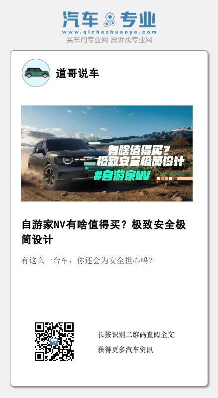 在新能源汽车极速速发展的同时问题不断,安全成了最大的忧虑,今天我们就聊聊自游家NV!先点关注看更多新车哦!