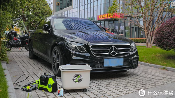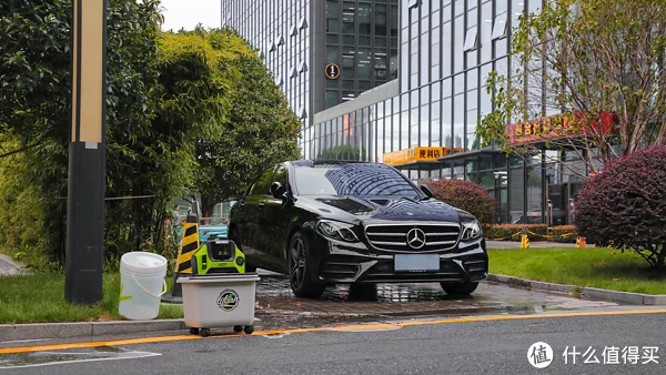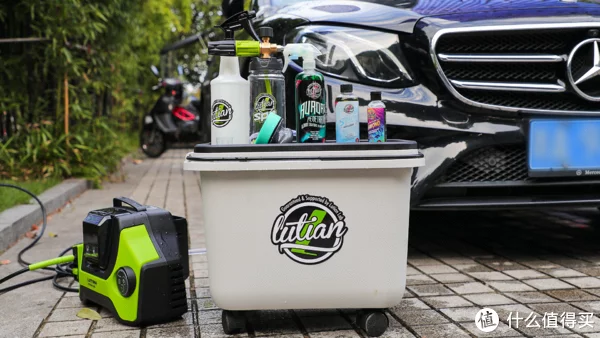 考虑到用电问题,只能选择锂电池的洗车机,之前老陈都是拿个水桶从负一楼上面夹层的M层(电瓶车库)提水直接擦拭车身,挺费劲的,而且也洗得不彻底。由于电瓶车库自然是有坡道的所以选择这款绿田创T5锂电洗车机就很合适。平时不用的时候洗车机等一切物料放桶里,要用的时候这个水箱可以接满水后通过坡道拖上去,比较省力。