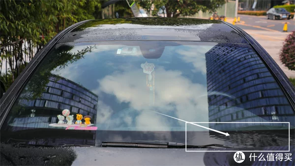 不好抓拍,所以可以看到右下角是有水流的,玻璃表面已经没有水渍,严格意义上讲是没有不规则水渍,这样能让整个玻璃的透光规则化,不会产生凹凸不平的玻璃表面,在晚上下雨的情况下对方车辆灯光太强会形成无数个反射点。