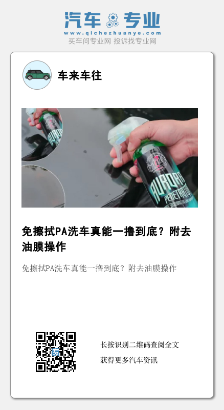 如果车漆表面只是一些附着力不强的灰尘,用水都能冲掉一些的话可以用这种超级简单的PA洗车,轻松简单搞定。前提是这种灰尘沾上去的时间不久,也就是距离上次洗车时间很近,如果时间很久又是泥巴类的粘上去了就别奢望PA洗车能搞定了。