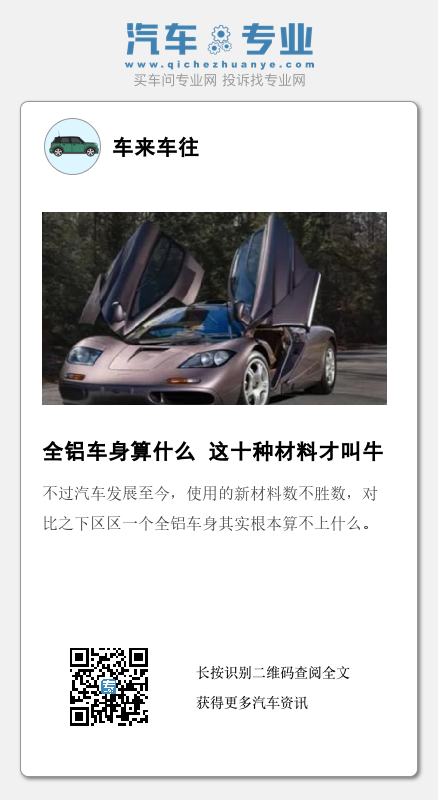 看完上述文章相信大家也能够了解到,汽车发展至今为了有所突破,车企们可谓是想尽了办法,尝试了很多种材料,最终才有了今天这样的成绩。而为了追求极致,很多车企不惜成本,从而达到最理想的效果。当然,任何成本都是和车辆价值直接挂钩的。相信随着科技的不断发展,未来汽车上使用的材料还将不断突破,我们现在所见过的只能代表它是这个时代中最好的产物。