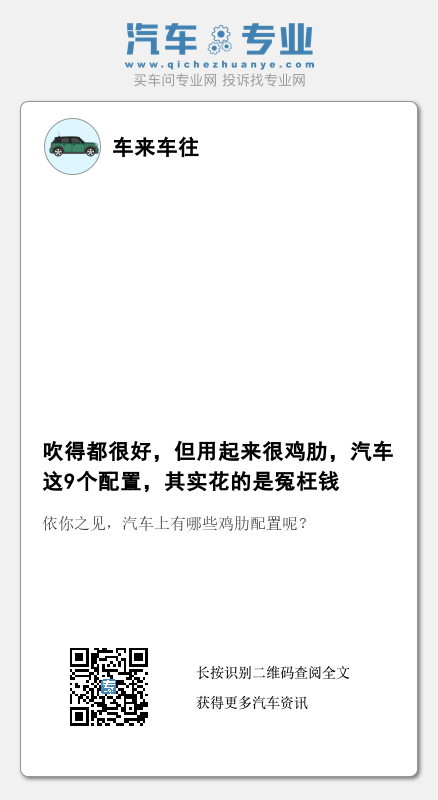 在这些配置中,大部分配置还是很实用的,还可以提高我们的用车品质,但是部分配置看上去很酷,但用起来并没那么爽。