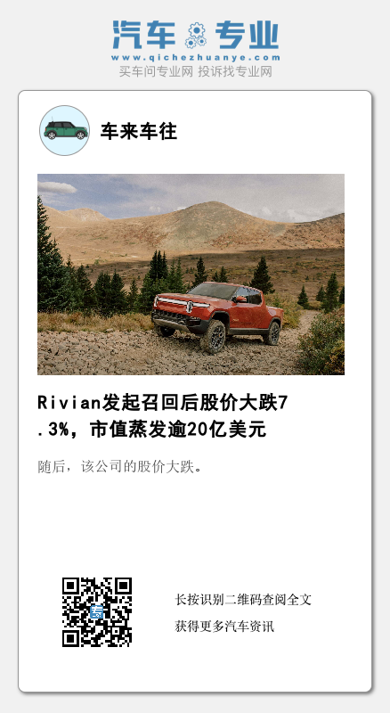 此前,电动汽车制造商Rivian宣布,在发现一个轻微的结构缺陷后,将召回交付给客户的约1.3万辆汽车。随后,该公司的股价大跌。