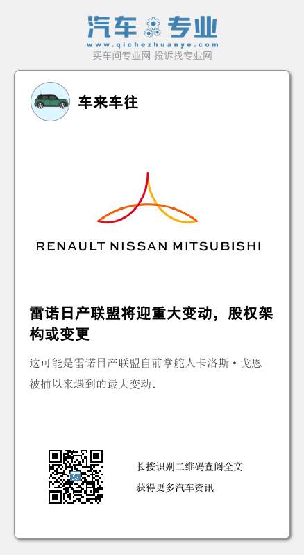 一位知情人士透露,日产汽车准备向雷诺的电动汽车业务投资5亿至7.5亿美元,并持有约15%的股份。而作为交换,雷诺也愿意签署一项计划,随着时间的推移将其在日产的持股比例从目前的43%逐步降至15%。除此之外,两家汽车制造商还表示,双方正致力于对联盟进行“结构改进,以确保联盟运营和治理的可持续性”。