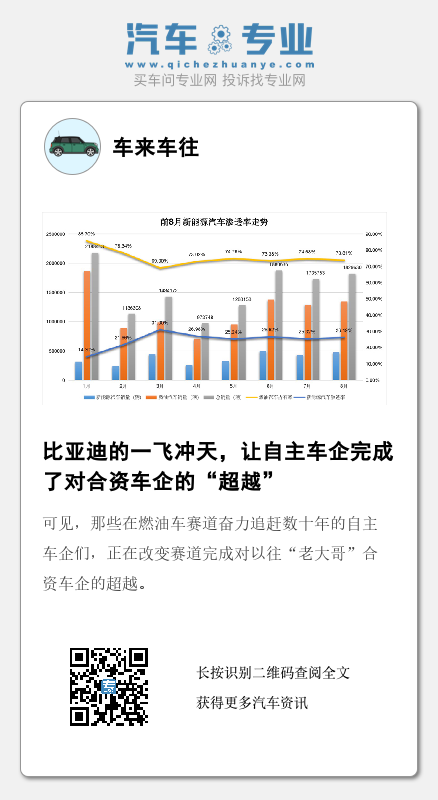 上险数显示,今年前8月的燃油汽车市场销量前10名中,只有长安和吉利2个自主车企,前20名中也只有8名是自主车企,和新能源汽车市场前20名仅有3名是合资车企不同,合资车企目前在燃油汽车市场还占有明显优势。